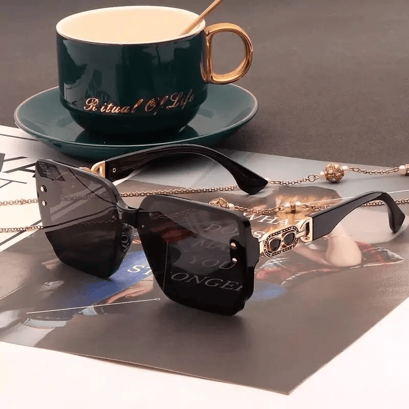 🕶️ Lunettes Soleil luxe carrées oversize dorure