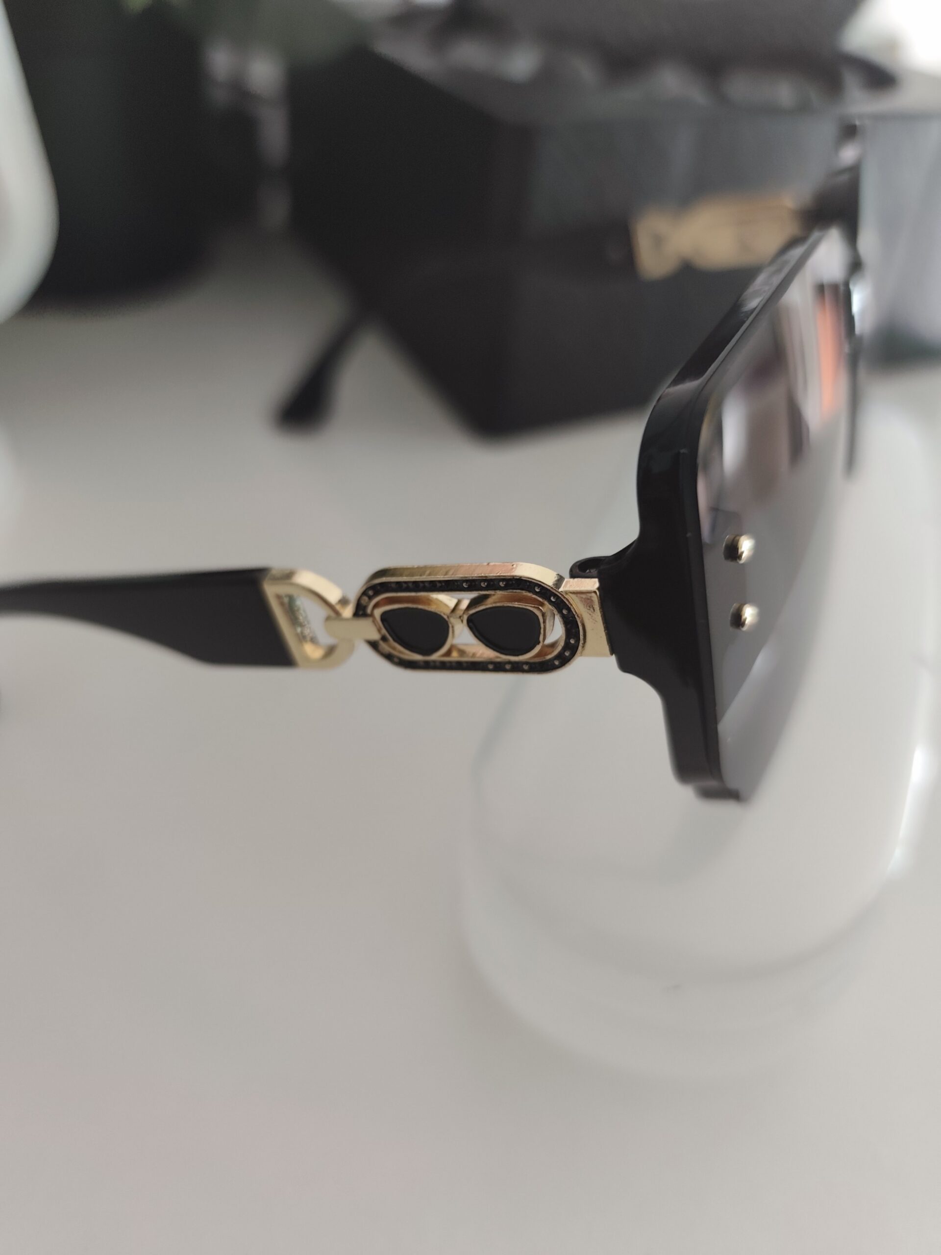 - Détail : Charnière dorée avec charm lunettes & strass