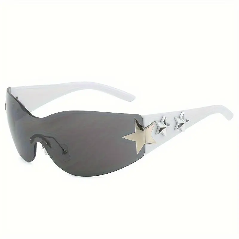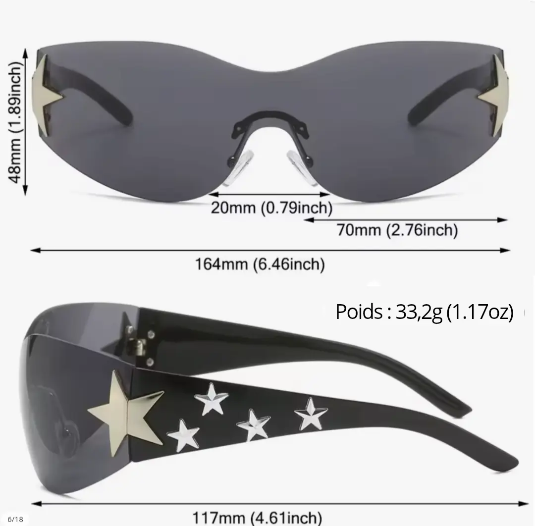 - Couleur : monture blanche épaisse avec étoiles argentées et verres noirs